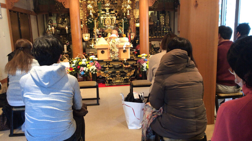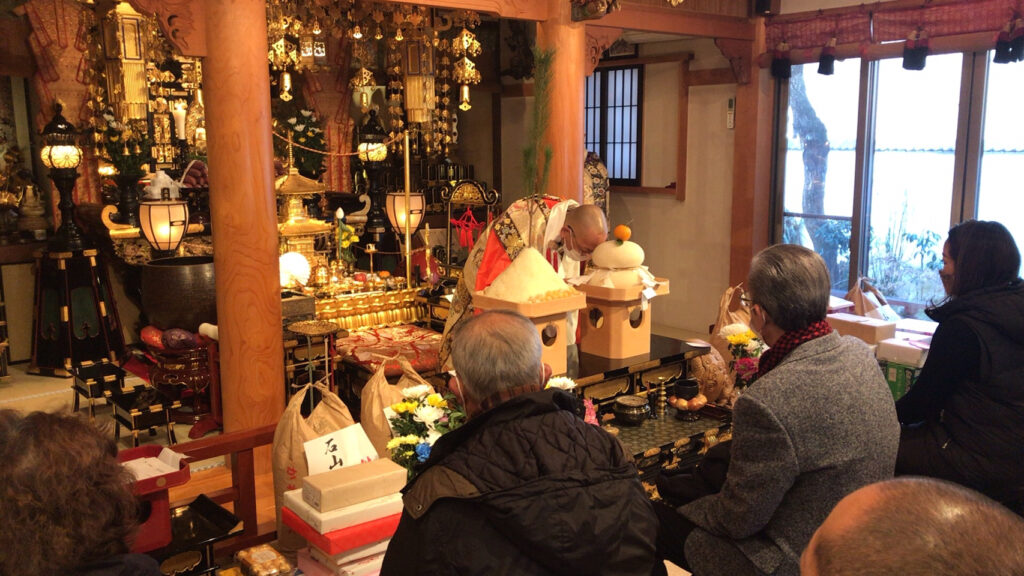 正式には「大晦日除夜法要」、「元旦修正会法要」という名称で、その年にお亡くなりになられた方々のお名前を読み上げ、故人様の徳を称え御供養し、報恩感謝する年一度の大法要でございます。